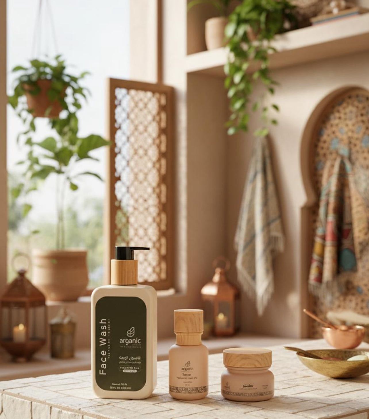 Huiles Naturelles : Huile d'argan, huile d'amande douce et huile de pépins de figue de Barbarie pour nourrir et protéger la peau.