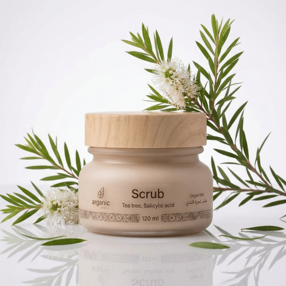 2 produits essentiels avec tea tree : un nettoyant pour purifier et un gommage pour lisser, desencombrer les pores et raviver l'eclat.